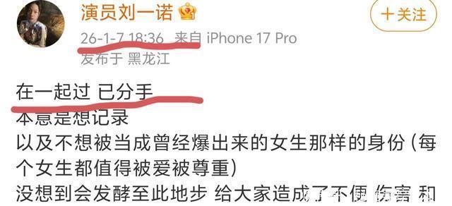 没想到, 刘一诺很快就大方承认了这段关系,她说:在一起过,已分手! 本意是想记录,不想发酵到这个地步,对不起。 这是在变相承认他们的关系吗?