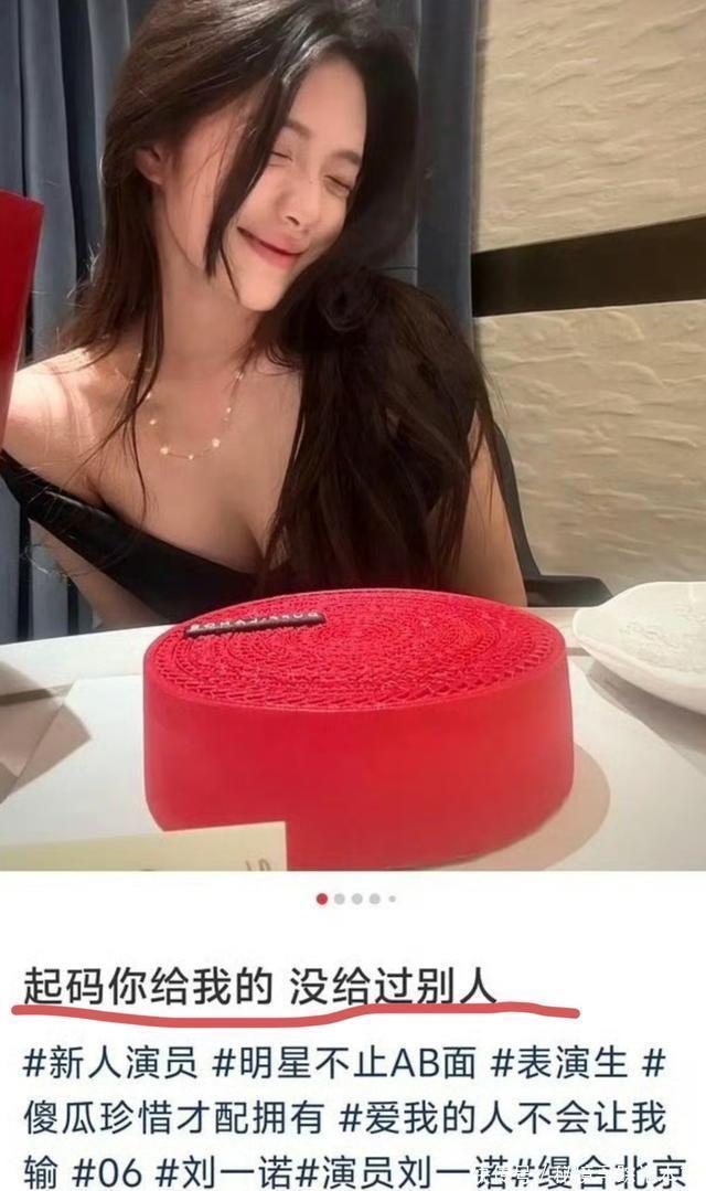 一位名叫 刘一诺 的女星,在社交平台高调秀恩爱: 起码你给过我的,没给过别人! 并炫耀: 要是你知道谁送我的,也会觉得我好命。 这赤裸裸的秀恩爱方式,还真是小女生的脾性。